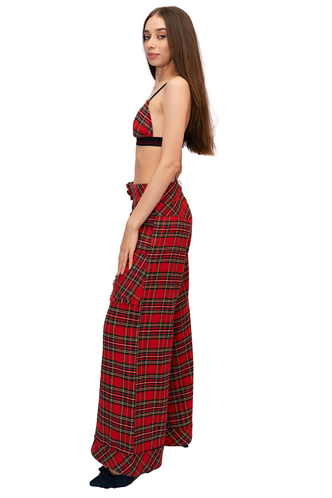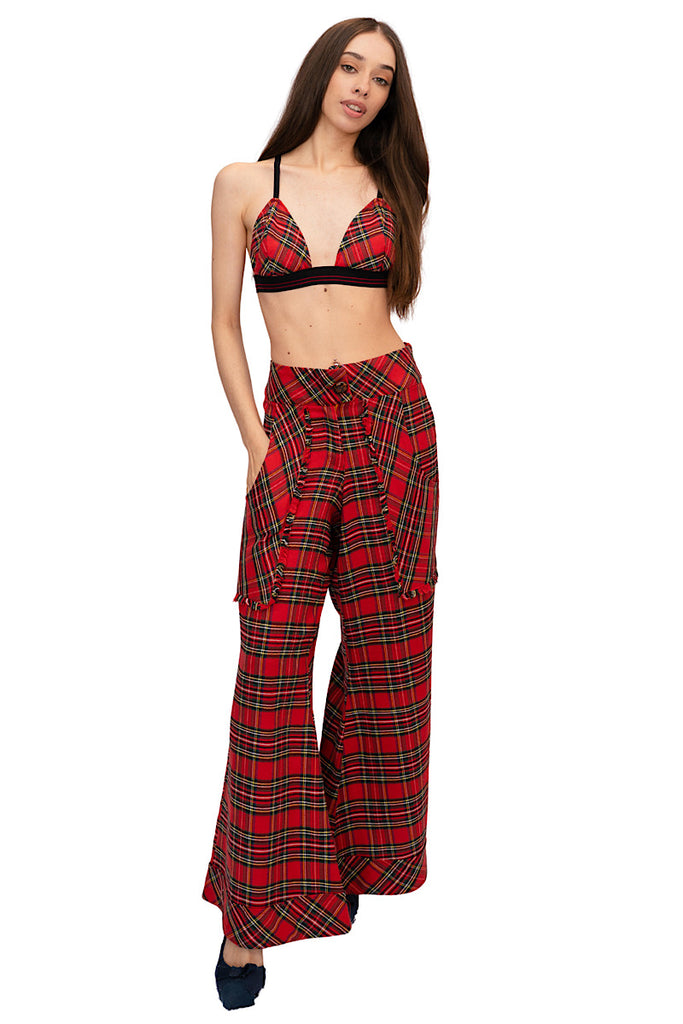 Beautifully crafted in vibrant red tartan, this bra top features a comfortable elastic waistband for a perfect fit. The straps add a stylish touch, while the tartan embroidered cup offers a charming and cohesive look. Perfect for adding a trendy and bold element to your outfit